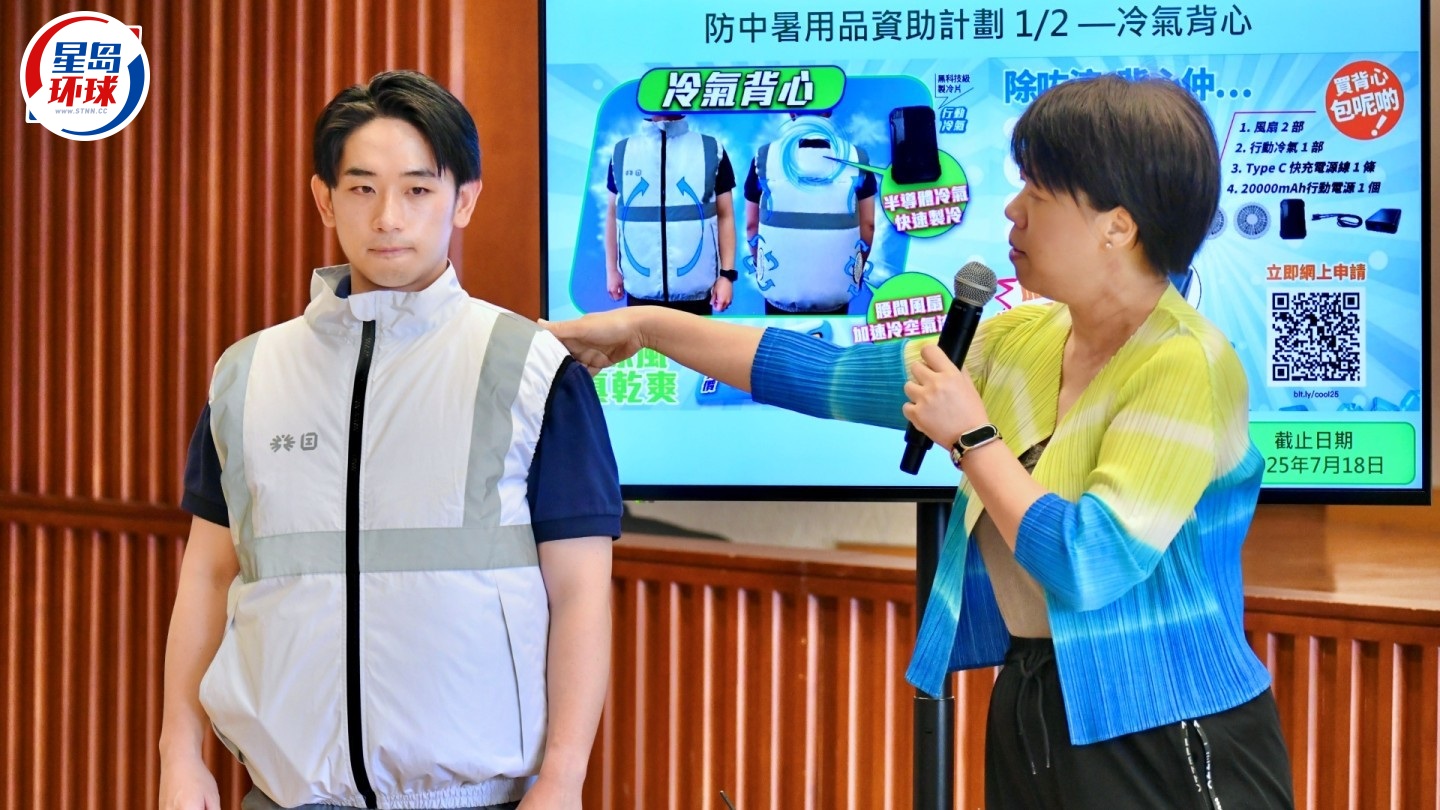 气候变化令香港近年的天气越趋炎热,职安局总干事游雯表示,为协助雇主采购有效的防暑用品,职安局与劳工处再度推出“防中暑用品资助计划”,资助较高中暑风险的行业的中小企、机构及工会购买防暑装备,经资助后,可以优惠价199元购买“冷气背心”及以100元购买“升级版太阳能风扇”等。