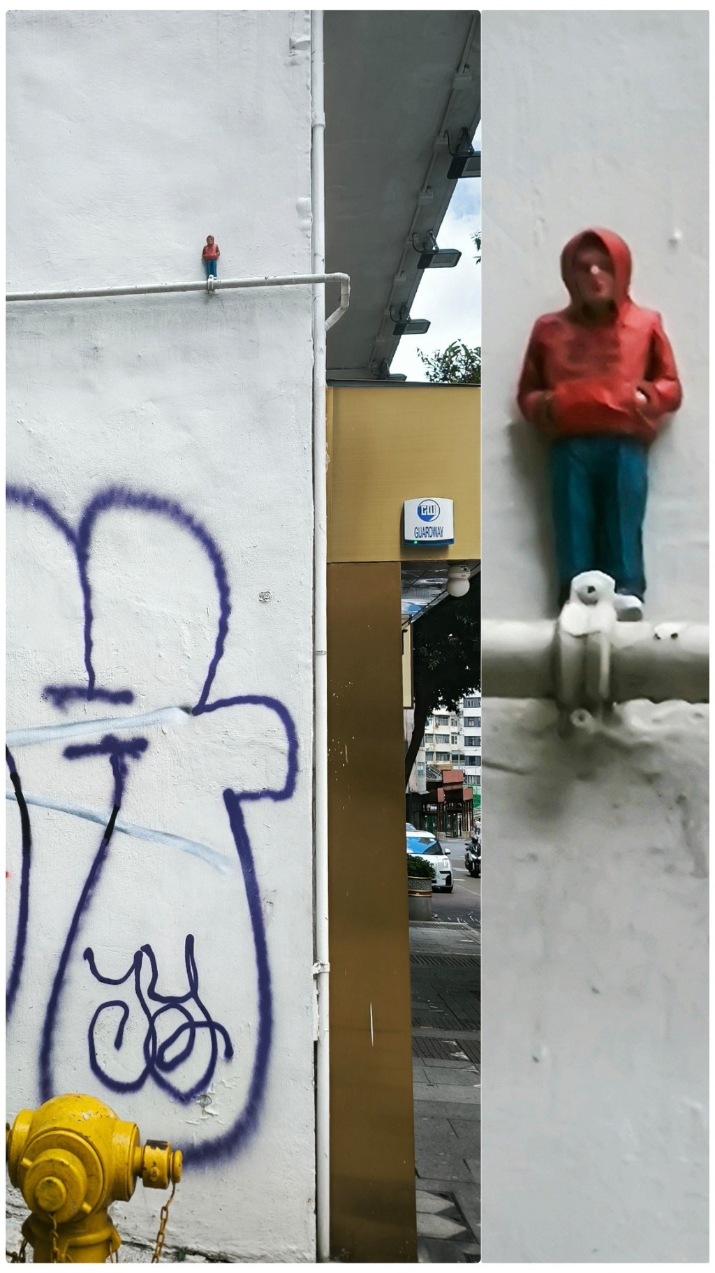Facebook群组”香港风景摄影会”的用户Raymond Tang近日分享了一系列相片,展示在香港街头不显眼的角落里隐藏着一些迷你雕塑人偶。 他指几日前在PMQ门口偶然发现高处站着一个有点诡异的小人玩偶、感到有点奇怪。 照片中的人偶或站在水管上、或站在詹篷上,放大图片看面容不清、目无表情,仿佛藏匿在不显眼的高处俯瞰经过的人类。 事主接二连三发现这些人偶,心想不可能是偶然,于是拍下照片并上网搜寻相关资料。