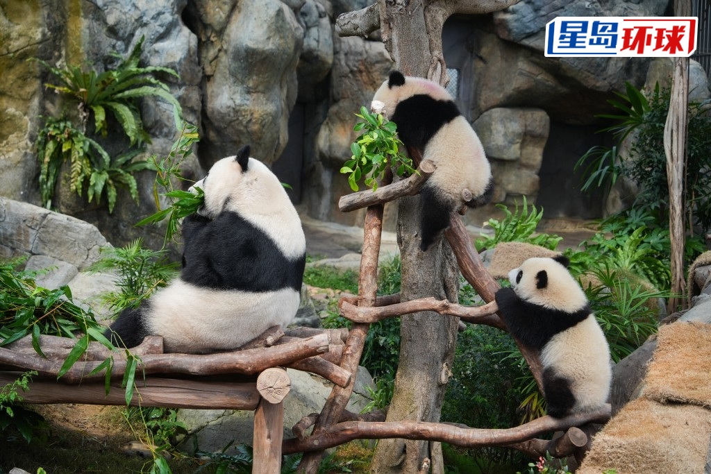 园方指,大熊猫龙凤胎与盈盈今年3月开始在大熊猫之旅中间区域一起与访客见面,为配合“家姐”、“细佬”的急速成长,公园将把邻近“大熊猫之旅”入口处的高地区域,一并开放予它们使用。 透过更多元和更复杂的伸延活动空间,让“家姐”和“细佬”在妈妈及熊猫护理团队的引导下,探索更丰富多样的栖息地,学习攀爬多变的山坡及更高的树木。