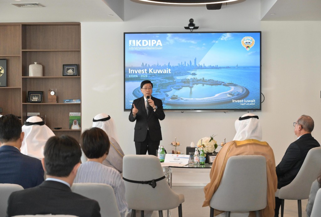 ▲李家超今日(14日)在科威特与科威特直接投资促进局代表会面,了解当地在招商引资方面的策略和成果。