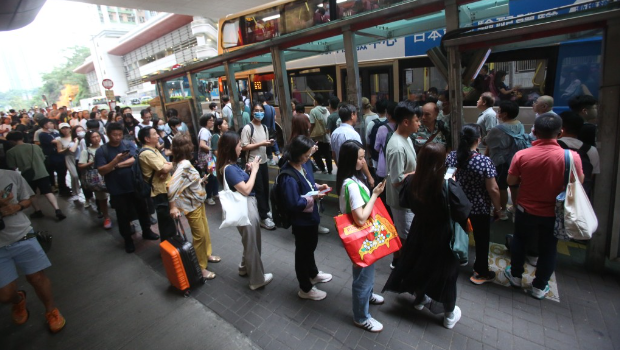 【19:03】正值收工时间,多区交通枢纽大挤塞,大批市民等候巴士,逼爆行人路。 有上夜班乘客称受事故影响,无法准时返工,怨声载道。