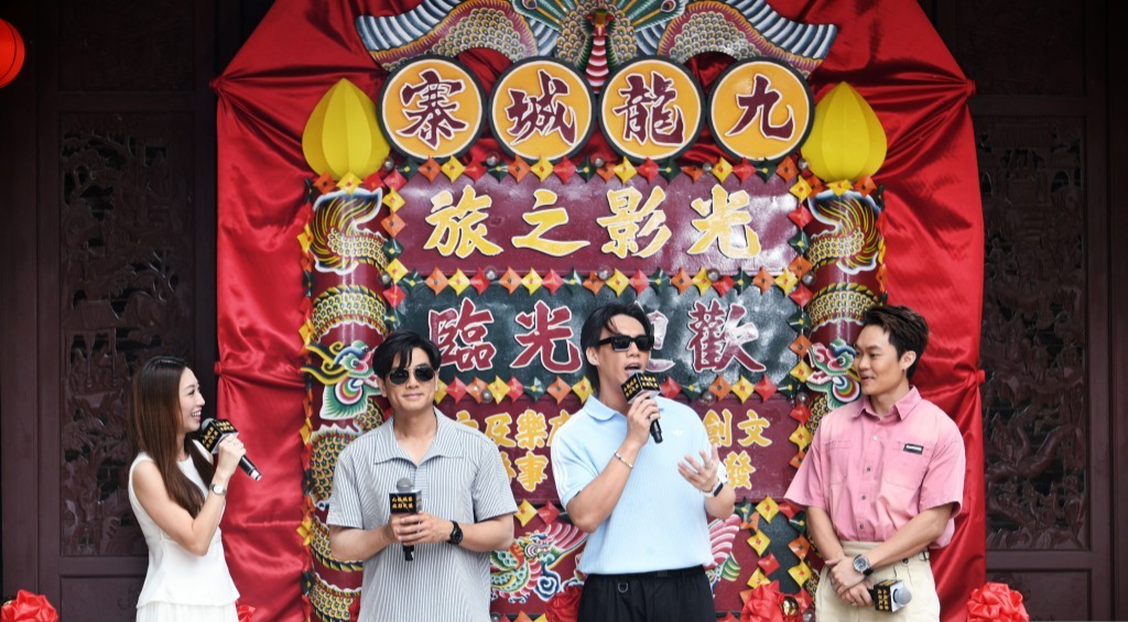 ▲(左二起)电影《九龙城寨‧围城》演员伍允龙、张文杰及胡子彤到场出席开幕礼。陈浩元摄