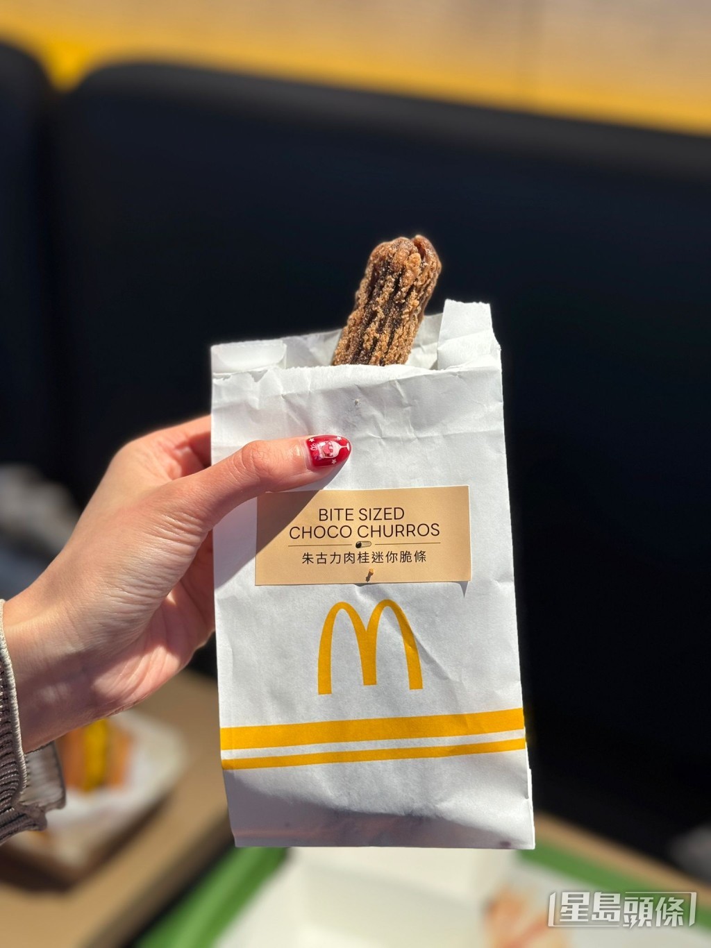 至于甜品方面,带来韩国大热朱古力肉桂迷你脆条(单点$18),外层金黄松脆,内里带浓郁牛奶朱古力酱,洒上肉桂糖糖粉;法国麦当劳的McPops迷你冬甩(单点$23.5)分别有香莓及朱古力口味,入口烟韧松软。