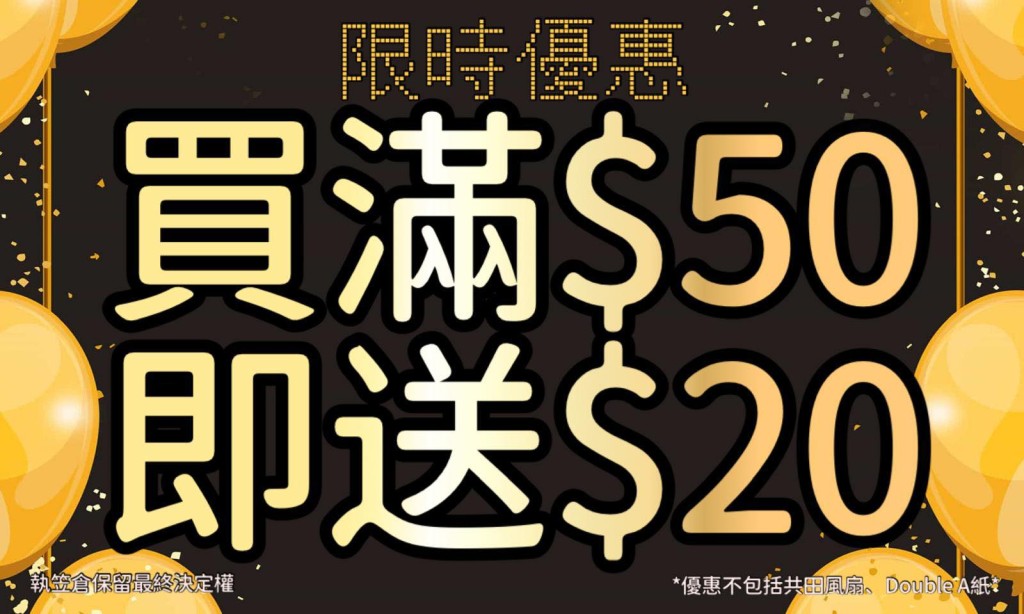帖文又指出,面对当前内地电商平台带来激烈竞争,平台有能力“烧钱攻港”,店家无奈只能以减价促销作为“自保”策略,试图吸引顾客回流“为求自保,减价促销唯一出路。”由即日起,凡于“执笠仓”全线分店消费满50港元,即可获赠20港元现金券,于下次购物,消费满$100时使用。