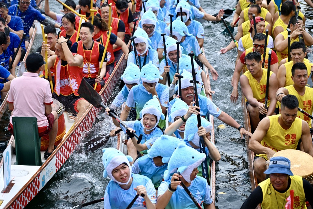今届东区龙舟竞渡大赛除了传统赛事外,更设有政府部门“创意造型奖”,他们打扮成全运会吉祥物的原型“中华白海豚”、大热国产动画“哪吒”、中国国宝“熊猫”等,为传统的龙舟赛事添上新意思,不少市民争相打卡。