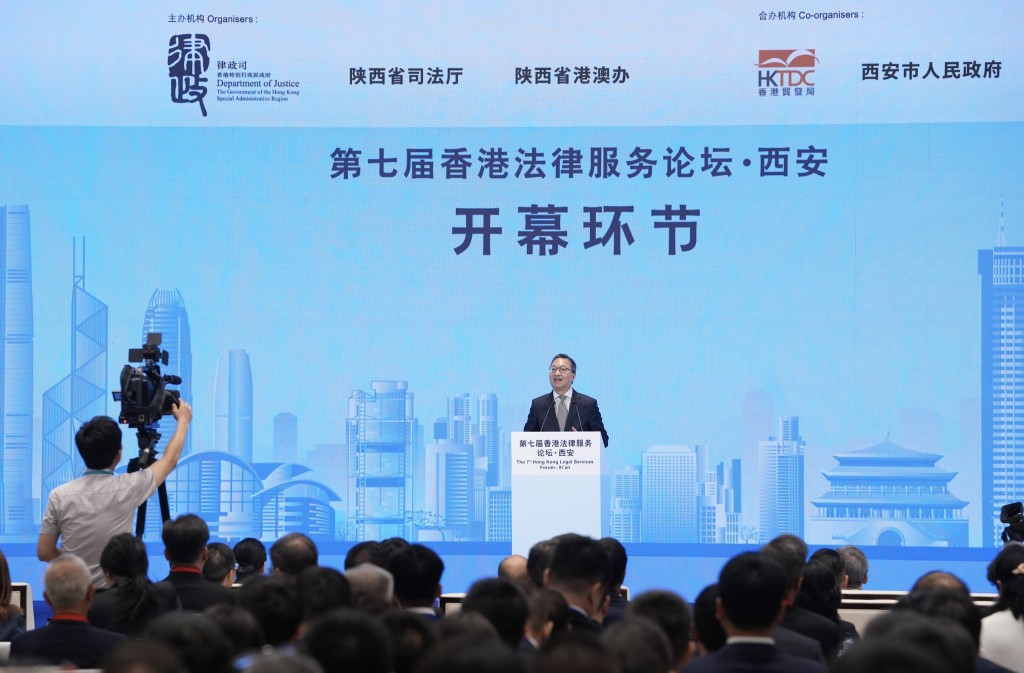 律政司司长林定国率领香港商界及法律界代表团到访西安,行程重头戏第七届“香港法律服务论坛”今早举行,活动吸引了逾800名来自陕西、西安及其他内地城市的法律及企业界代表参与。林定国率领超过120人的香港代表团出席,是历年来规模最大的代表团,充分展现了在“一带一路”倡议下,陕港双方对法律合作的重视及意义。