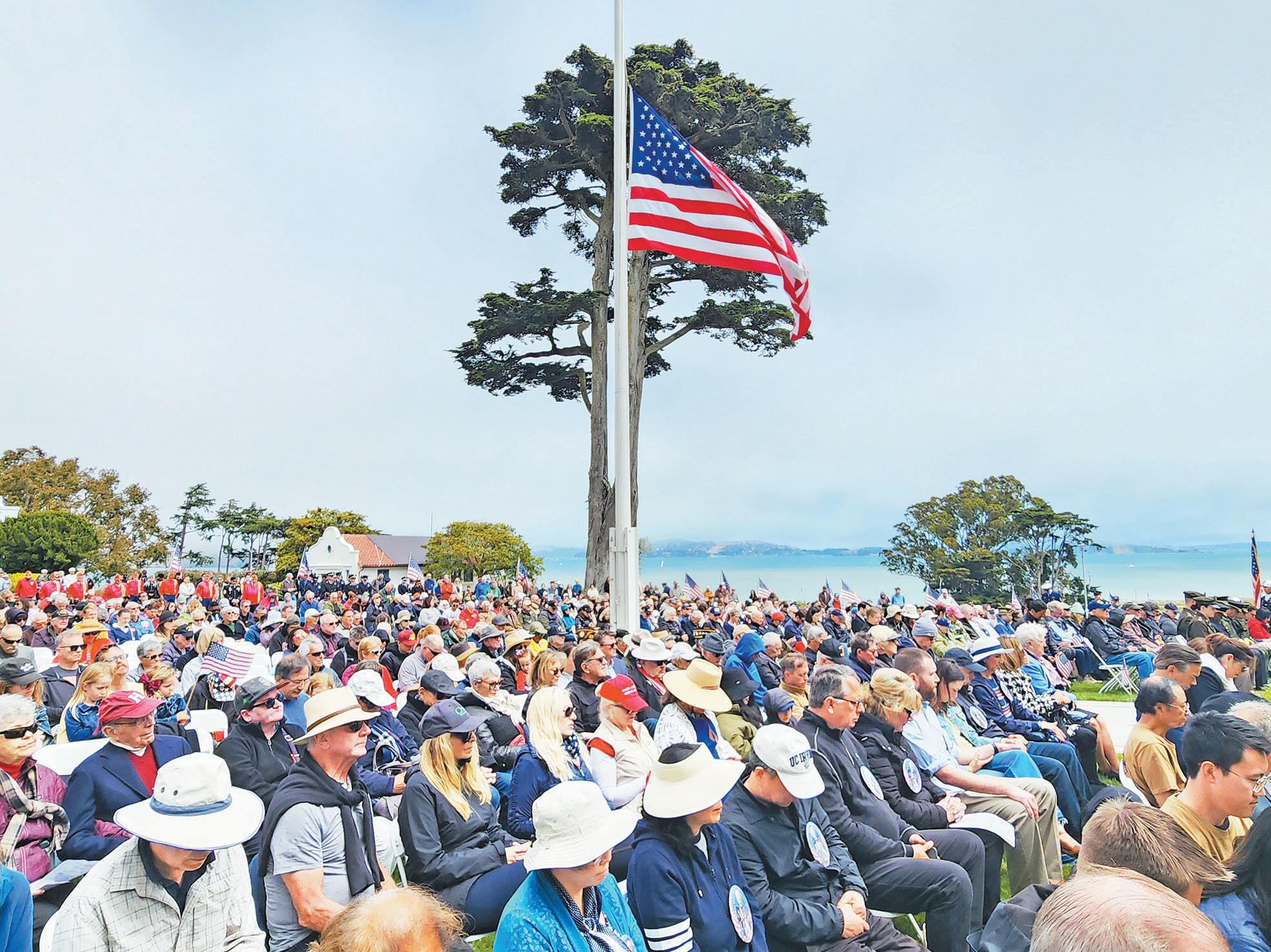 仪式中,旧金山的后备军官训练团(ROTC)进行授旗仪式,美国海岸警卫队的直升机也在现场上空飞越致敬。公墓与纪念碑前插满一面面星条旗,象征对阵亡者的无尽追思。仪式还包括空军乐队演奏、鸣枪致敬等传统项目。