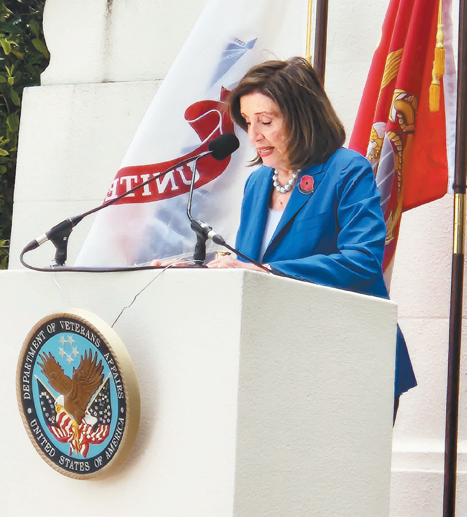 联邦众议院荣誉议长普洛西(Nancy Pelosi)到场致辞。她表示,尽管当前民主制度面临挑战,但“星条旗从未倒下”,象征美国的民主依然屹立不摇。她说:“我们今天站在这里,怀着对那些为国捐躯者的敬意,向他们的英勇、无畏与爱国精神致敬。”加州总检察长邦塔、三藩市警察局长施革和旧金山县警局局长保罗宫本等都到场参与。
