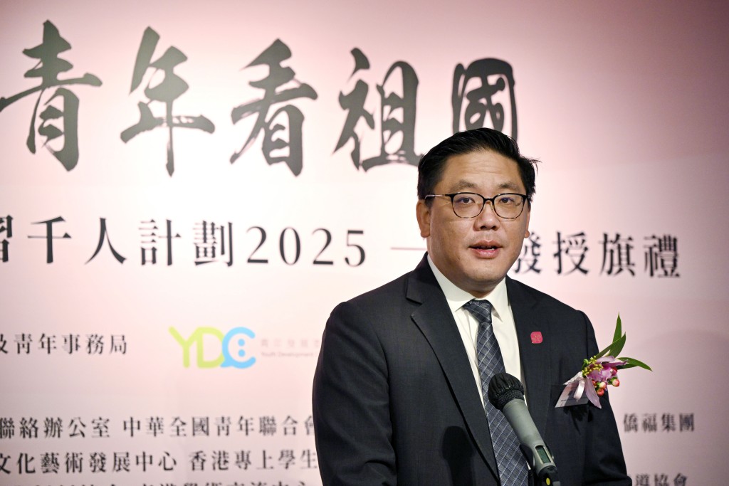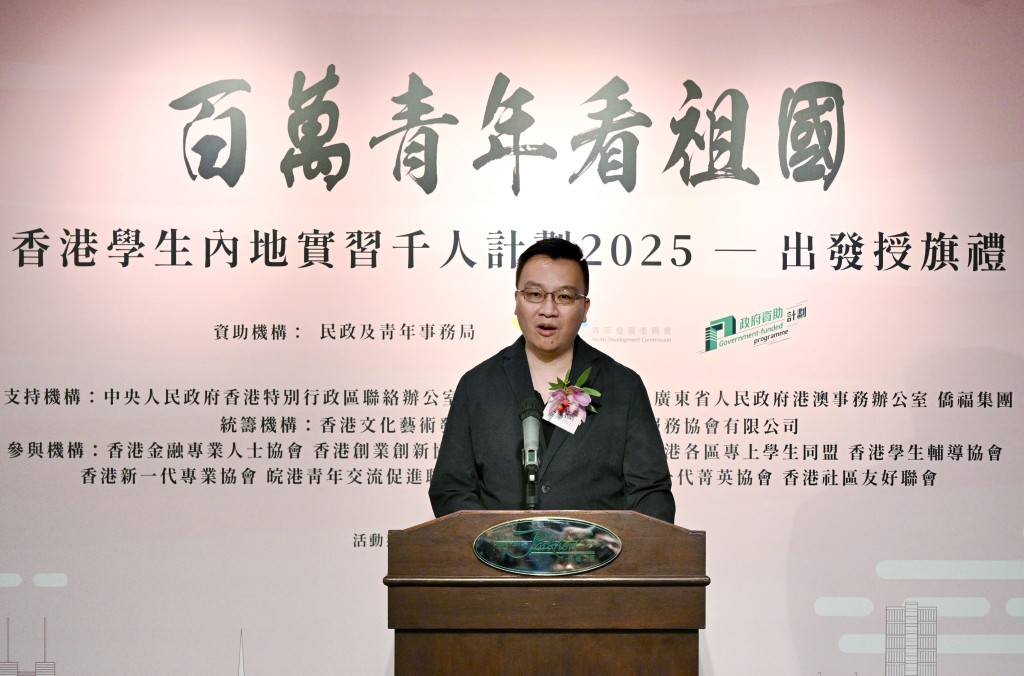 ▲百万青年看祖国—香港学生内地实习千人计划2025出发授旗礼。 苏正谦摄
