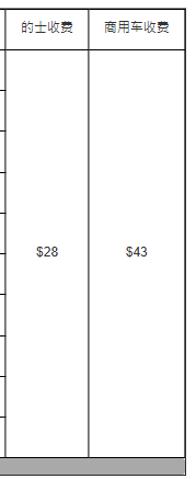 至于星期日及公众假期,各类车辆不分时段,全日统一收费,私家车18元,电单车7.2元,的士28元,商用车辆43元。