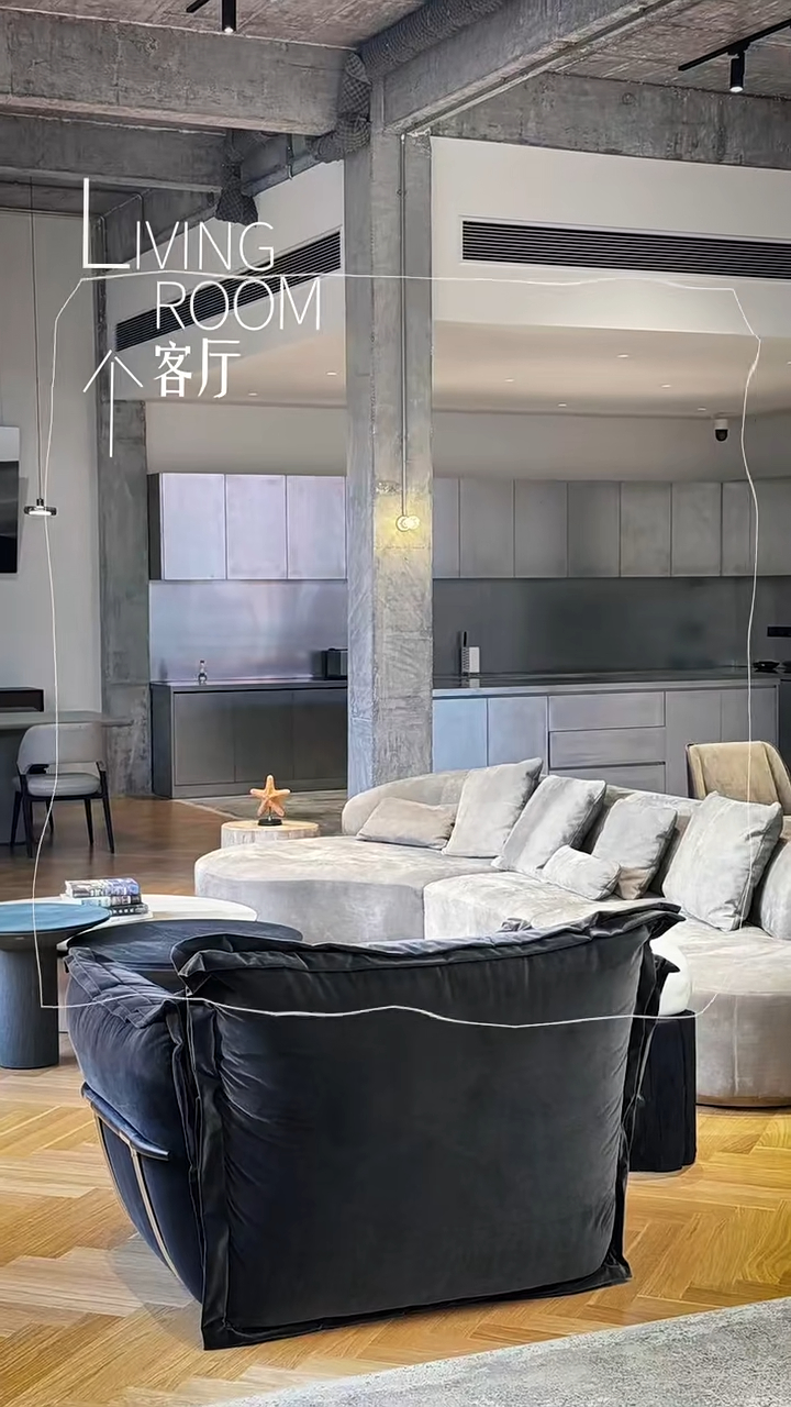 ▲同一层还有大客厅,旁边有个开放式厨房。