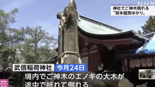 神社的住持中尾宗康表示,从小就守护这棵树,今天突然消逝,令他十分难过,但所幸没有造成人命伤亡,“这或许是神木最后的守护”。