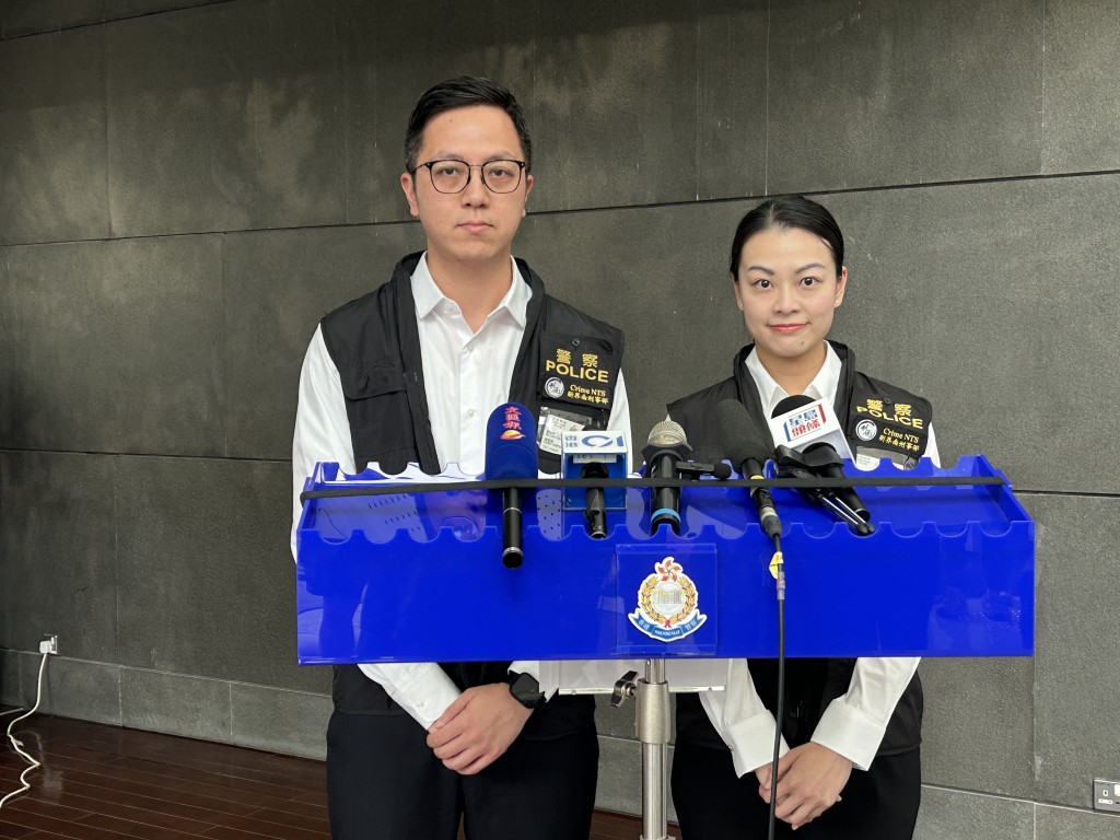▲新界南总区刑事部署理警司刘煜华(左)及防止罪案办公室总督察陈咏君(右)向传媒简报案情。
