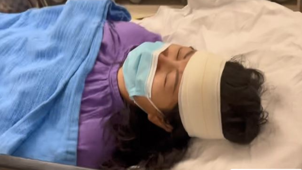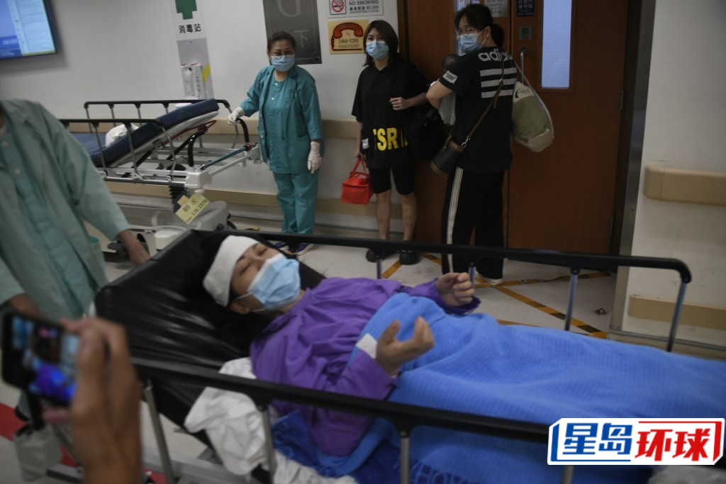 ▲何太头部被包扎。杨伟亨摄