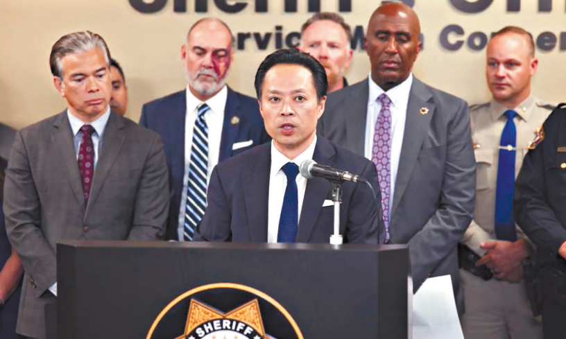 ▲多个执法单位代表在沙加缅度开记者会,讨论打击芬太尼。 沙加缅度县警局