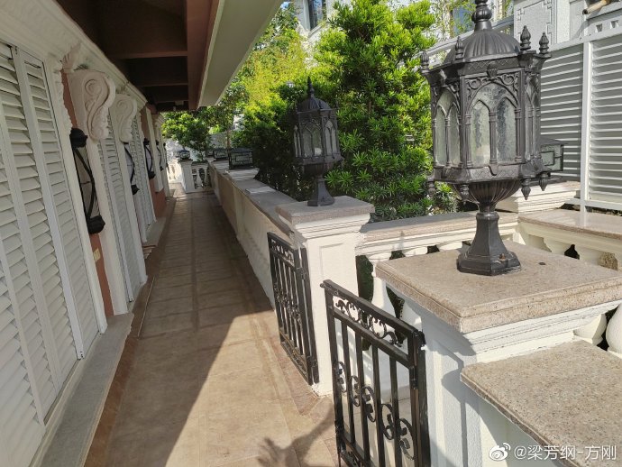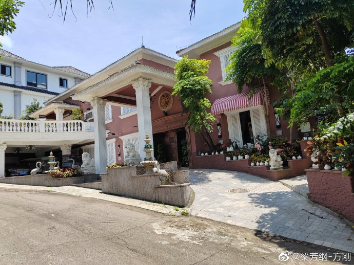 近年方刚过着养尊处优生活,脸容变成慈祥长者,昔日扮演奸角的戾气都荡然无存,更加令人羡慕的,生活无忧的方刚过住“住洋楼养番狗”的优游生活,他不时在微博贴家居相,他住的正是气派十足的复式独立屋,门口有对石狮子,旁边设有喷泉,另一边的大闸则通往花园;而长长的平台铺上红白地砖,并摆放了多张大枱及椅子,周围有鲜花、盆栽及大树点缀,充满旧式露天茶座情怀。内部装修金碧辉煌,有不少看似价值不菲的摆设兼古董,饭厅大到摆得落两围酒席,闲闲地招呼2、30人都冇问题,相当豪华证明他身家丰厚。