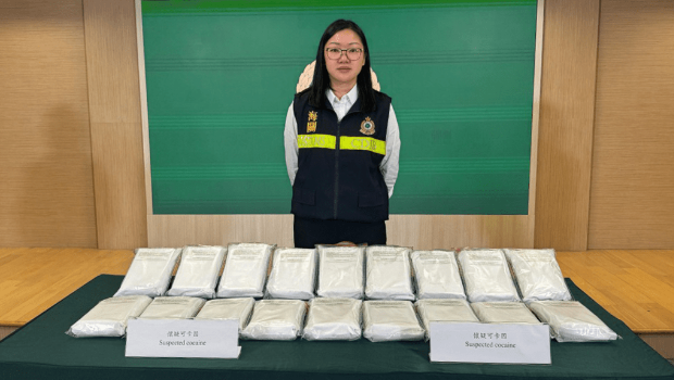 海关表示一对男女昨日从南非约翰内斯堡飞抵本港。 海关人员清关时,利用X光机检查二人的手提行李箱,发现X光影像有可疑,于是打开检查,共起获18包合共18公斤重的可卡因,估计市值约1500万元。
