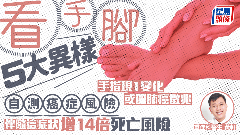 胸腔暨重症专科医生黄轩在Facebook专页发文,引述不同研究,讲解手脚出现以下警讯,随时可能是癌症先兆,不容忽视: