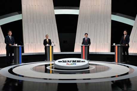 ▲韩总统大选4大候选人李在明、权英国、金文洙、李俊锡(右),上周二在首尔MBC电视台准备进行电视辩论。路透社