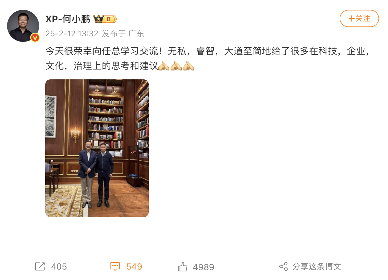值得一提的是,早在今年2月,小鹏汽车董事长、CEO何小鹏拜访华为创始人任正非并进行闭门交流,为此次合作埋下伏笔。何小鹏还发布了一张与任正非的合照称:“很荣幸向任总学习交流,任总给了很多在科技、企业、文化、治理上的思考和建议。”