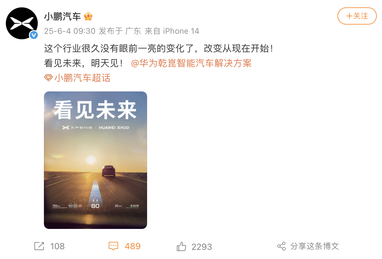而关于关于具体的合作内容,双方则未做进一步说明。但有业内人士指出,从预告海报来看,图上标有HUAWEI XHUD字样及HUD画面,或预示着小鹏汽车将采用华为AR-HUD抬头显示技术。另有消息称,双方合作首款落地车型可能是小鹏G7。