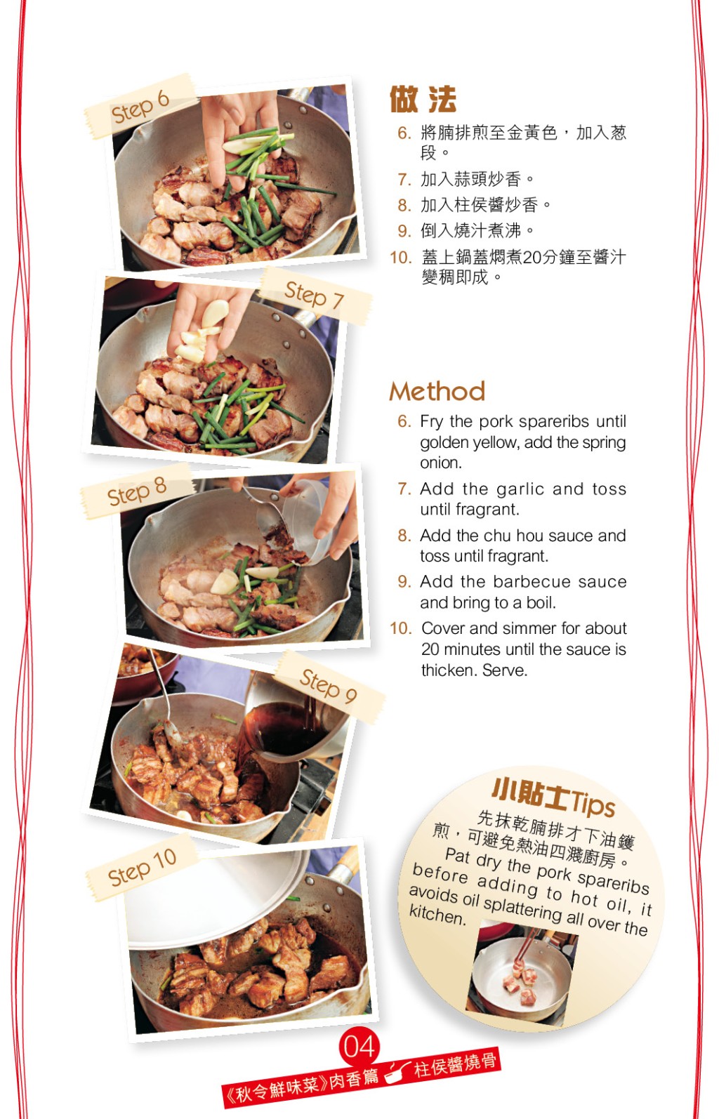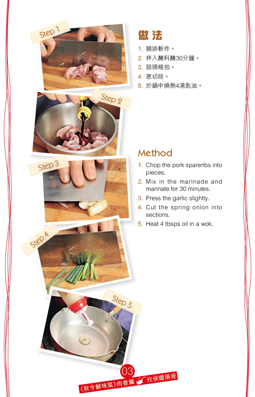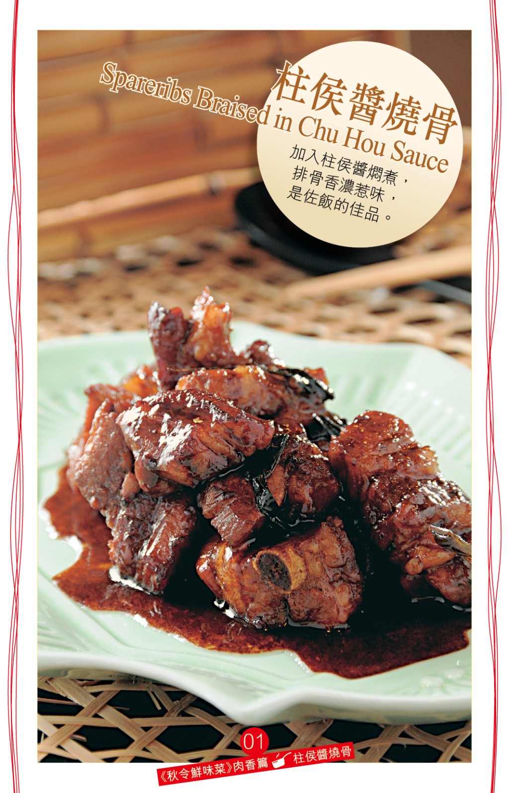 烹调家常菜最重要是方便和省时,今日示范的柱侯酱烧骨,主食材只有腩排,配以蒜头和葱提升香味,再用惹味柱侯酱和自调烧汁调味,是做法极简单的鲜浓家常菜。