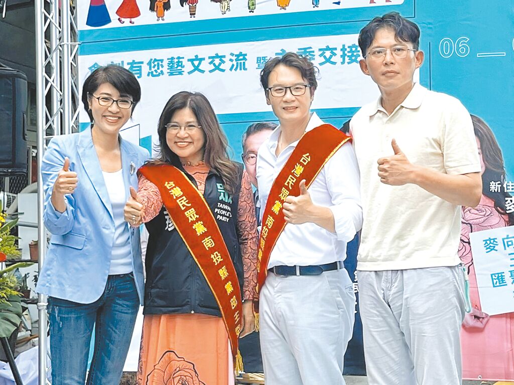 ▲民众党南投县党部主委7日交接,南投县长许淑华(左一)出席与民众党主席黄国昌(右一)同框。(中时新闻网)