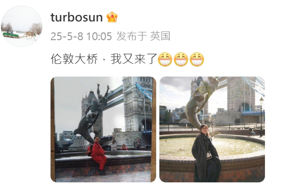▲孙俪5月初在微博晒出两张伦敦塔桥照片。(图/翻摄自孙俪 微博)