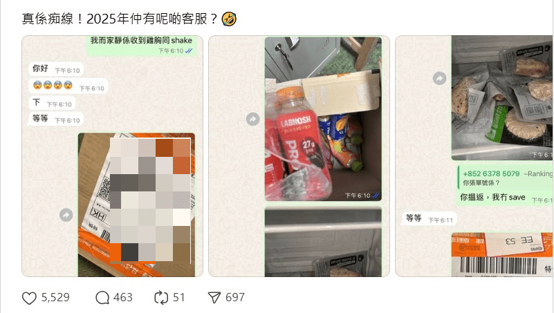 近年即食鸡胸大行其道,不少有健身习惯的港人都会以即食鸡胸或蛋白质高的食品为主食,经网上商店购买更可以大手入货,方便繁忙的都市人。 不过,最近有网民在社交平台分享,指日前经一间网上商店购买套餐,包括主食、即食鸡胸及饮品,到货后却发现主食“失踪”,随即向网店客服查询,惟最后客服提供的解决方法令事主大感不满,直言:“真系痴线! 2025仲有呢啲客服?”