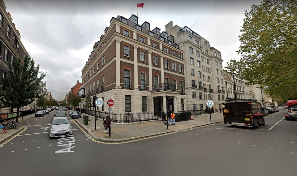 ▲中国目前位于伦敦西敏市的大使馆。 Google地图