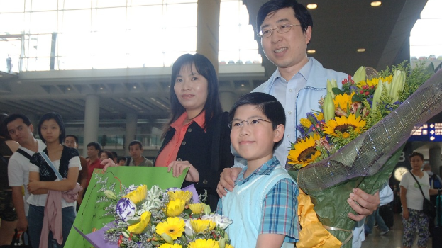 ▲十岁“钢琴神童”沈靖韬夺德国埃特林根国际青少年钢琴比赛甲组冠军后返港。资料图片