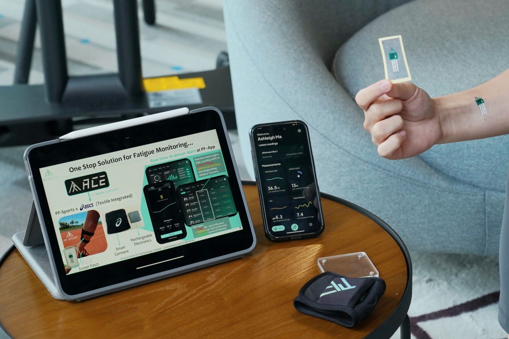 同样将会参展的初创“PointFit”,研发了可侦测肌肉疲劳程度的汗水感应器,用户只需将一块超薄抗菌纳米薄膜贴在手臂上进行监察,配合手机应用程序,可实时监测肌肉疲劳情况和压力水平,避免运动员过度练,更可减少进行入侵性血液测试。