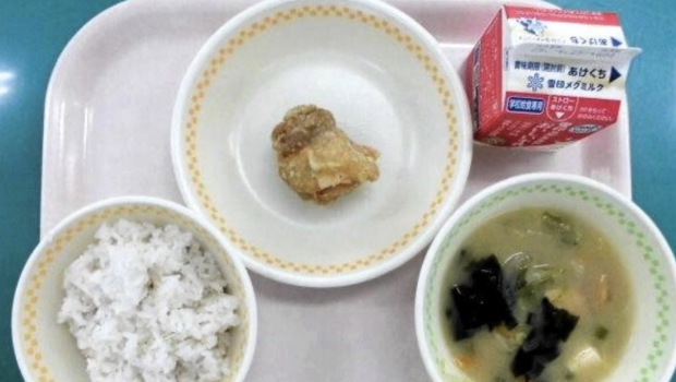 日本物价飞涨,学校营养午餐越来越寒酸引发热话。 近期福冈市一份午餐令人惊讶,除了面鼓汤、一碗饭和一盒牛奶,但主菜只有1粒炸鸡。 网民在X平台上热烈讨论,纷纷批评“太少了”、“太寒酸”。 福冈市当局受访时解释说,这份餐点其实符合传统标准,“卡路里也够”。