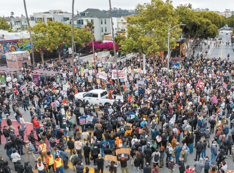 联邦移民执法人员上周在洛杉矶大执法,引爆全民怒火,洛杉矶周末爆发大型示威,共和党总统特朗普不顾民主党州长纽森反对出兵镇压。湾区三座大城周一(9日)有不少示威者举行集会展示团结,声援洛杉矶,炮轰特朗普挑起事端。