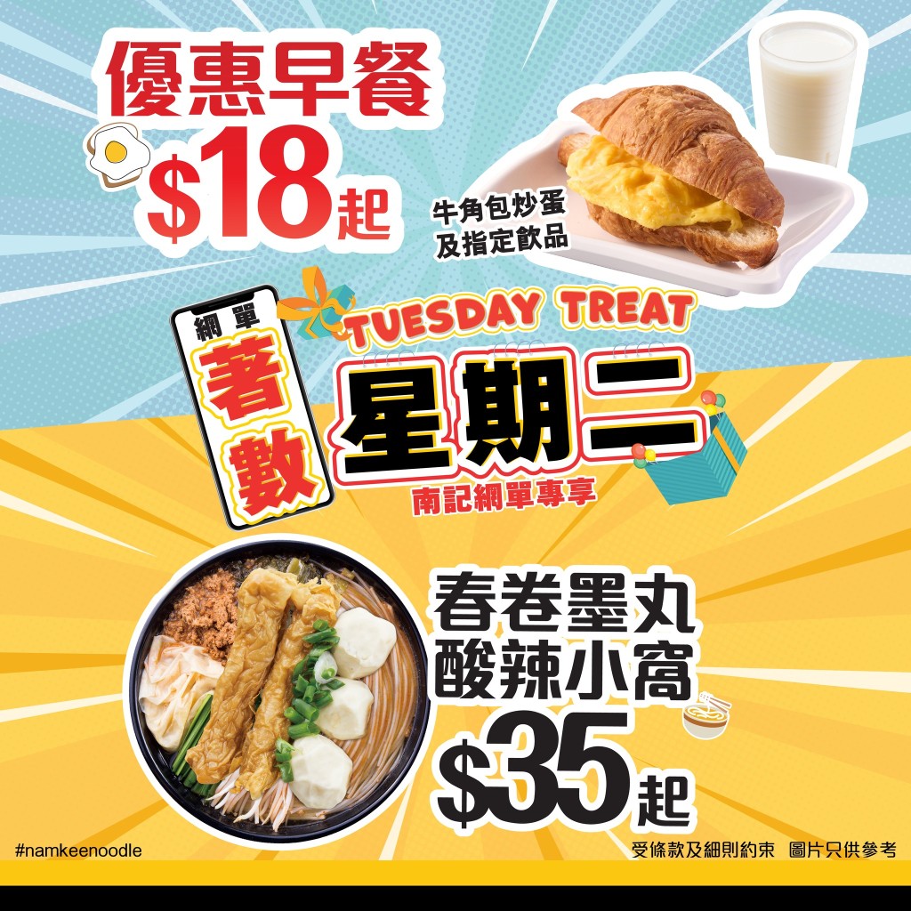 南记粉面推出全新优惠!限时活动“着数星期二”为食客带来多款超值精选美食优惠,只需透过南记 App 或网上订单平台即可享受,早餐低至$18起、米粉低至$27!无论是上班族还是家庭主妇,都可让每个星期二变得更美味、更实惠!