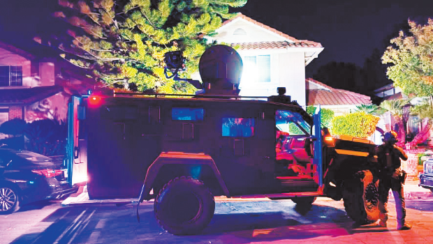 ▲执法人员在洛杉矶逮补13名涉亚美尼亚裔帮派血腥斗争的疑犯。 国土安全调查局