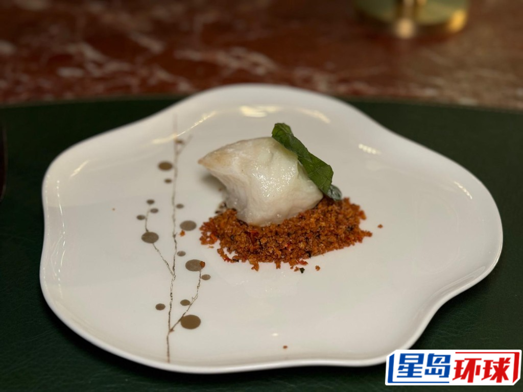 六道菜单餐以中西合璧为亮点,前菜有鲍汁海参饺,是采悦轩的招牌菜式,饺子外皮以辽参造型呈现,酿入海参粒、鲜虾及猪肉内馅,入口鲜香滑嫩,饺子在浓郁的鲍汁中炖煮,吸饱酱汁精华,风味浓郁;黄豆酥白鳕鱼同样是采悦轩另一招牌菜,鳕鱼肉质细腻鲜甜,入口即化,配以加入辣椒炒香的黄豆酥,带来微辣风味与脆爽口感。