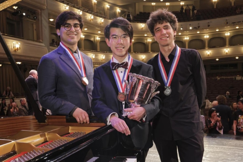 ▲香港年轻钢琴家、29岁沈靖韬(中)赢得音乐界古典乐钢琴演奏四大国际赛之一的范克莱本国际钢琴赛冠军。