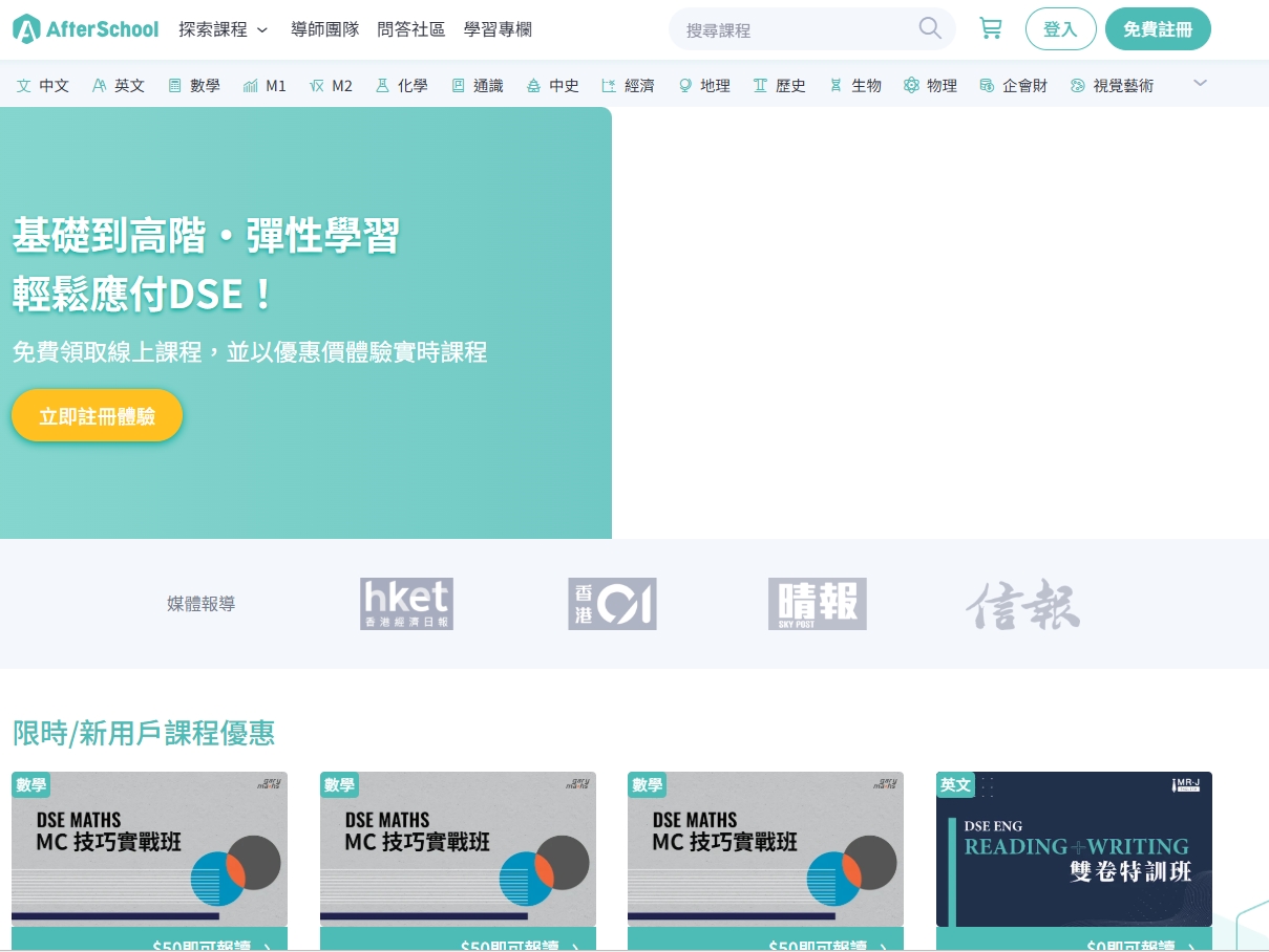 ▲AfterSchool是香港最大型网上DSE补习平台。AfterSchool官网截图