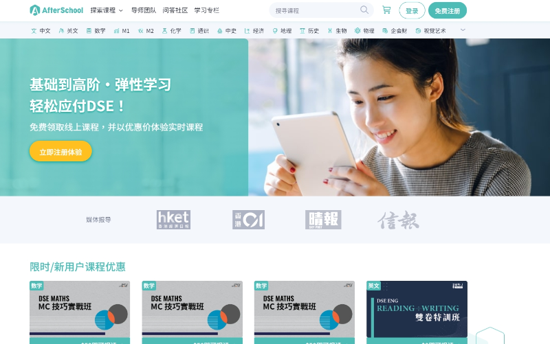 当然随着互联网经济的普及,线上补习也已经被广大学生和家长普遍接受了。AfterSchool 就是其中之一。AfterSchool于2018 年成立,是目前全港最大型网上DSE补习平台,提供录播课程和题库,导师即时答疑,课程涵盖多学科。