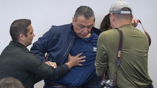 ▲帕迪利亚遭压在地上,锁上手铐。路透社