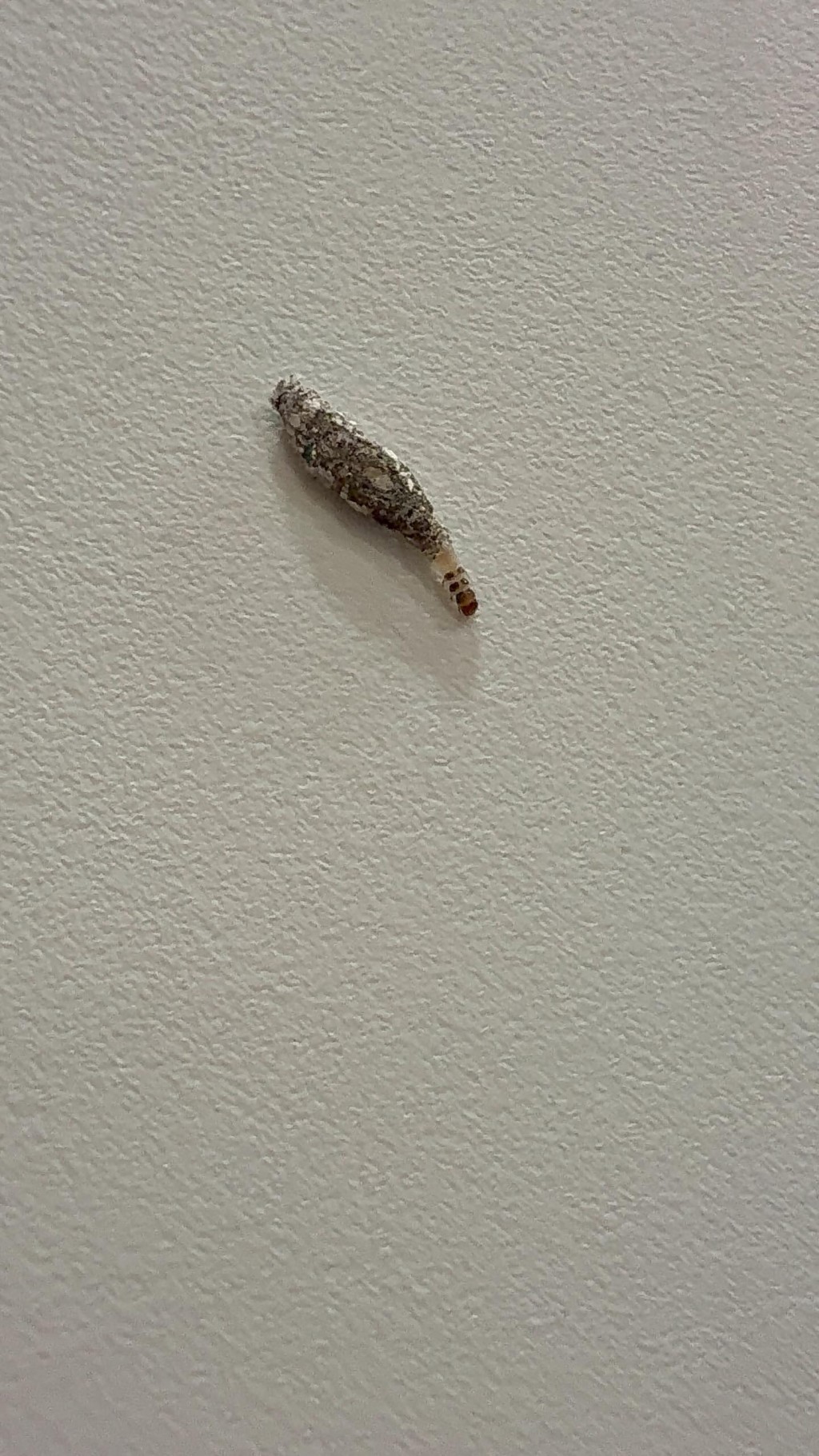 ▲近日有居民在浴室墙面发现一种以白色薄膜包裹的奇特昆虫,只露出头部缓慢移动。