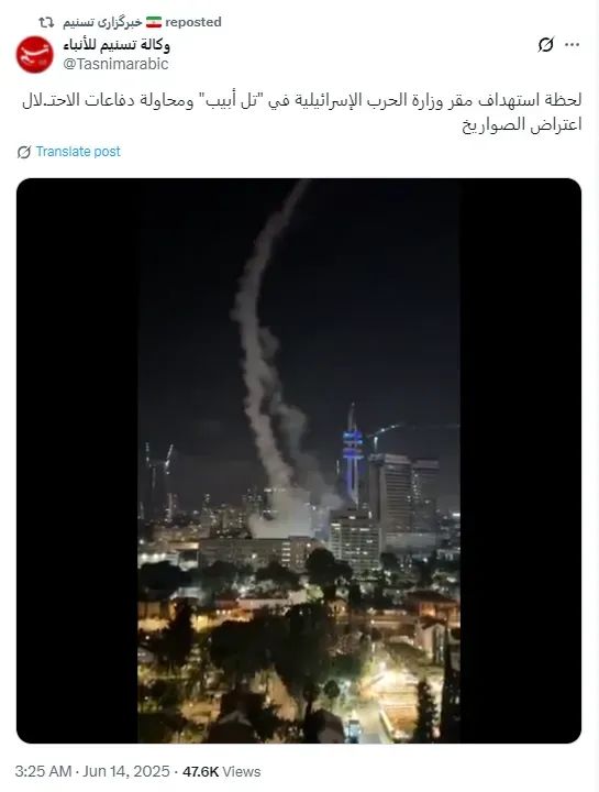 美国《纽约时报》14日援引相关视频称,至少有一发导弹击中了基里亚基地周边一处“敏感军事设施”。截至目前,以色列方面尚未公布袭击造成的伤亡情况。