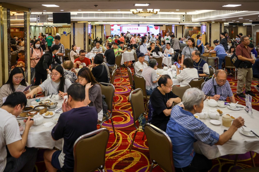 ▲旺角一间酒楼,午市时段人流畅旺。 何家豪摄