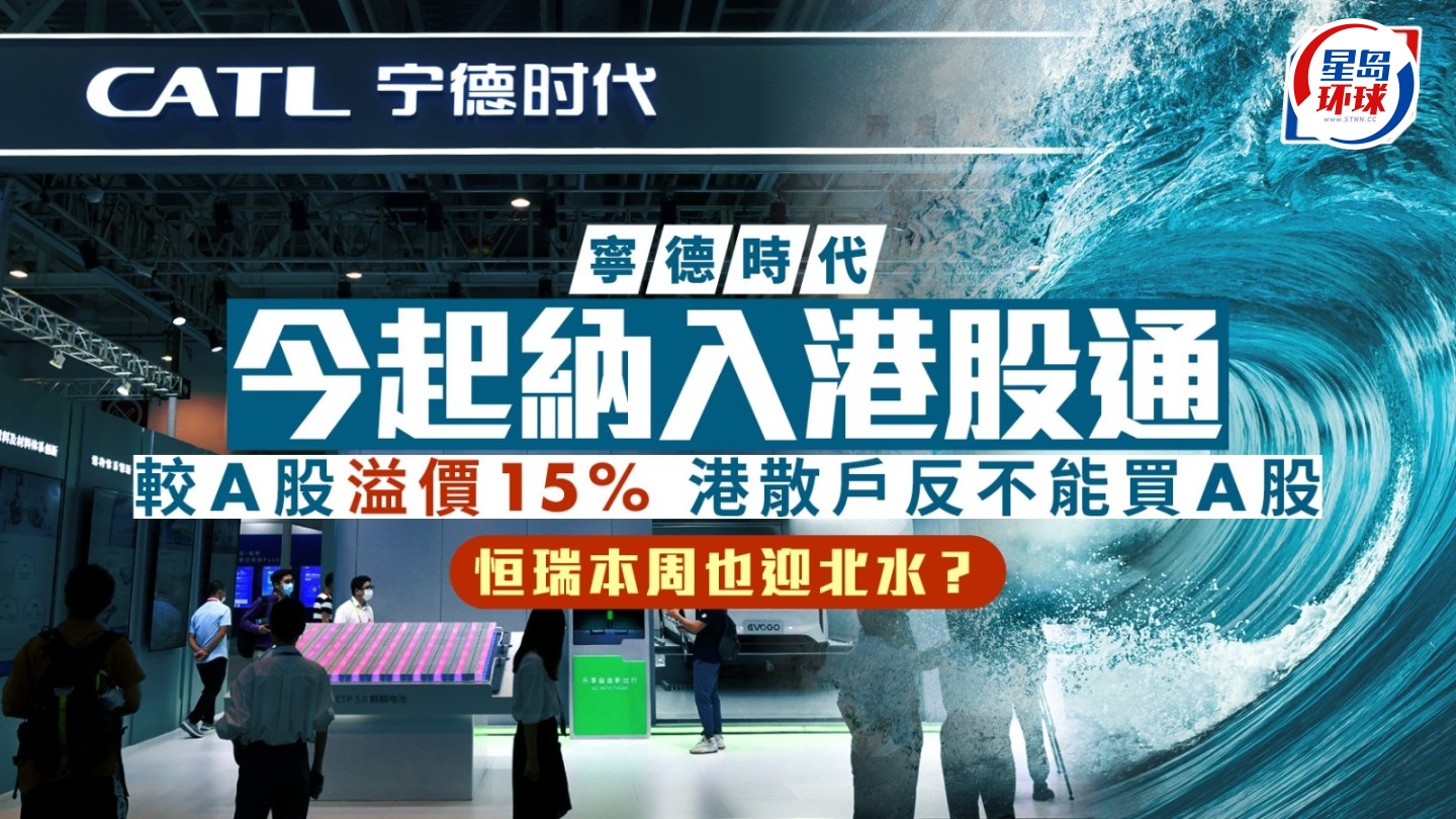 今年焦点新股宁德时代(3750)周六(14日)在港市场价格稳定期结束、且相应A股上市满10个交易日,获上交所调入港股通名单及周一(16日)起生效。该股上周五收报313元,较上市价高19%之余,亦较宁德时代A股(300750)溢价逾15%。由于内地投资者今日起将可以买入宁德H股,料进一步推高股份成交、甚或令溢价扩大;相反,香港散户又能否买入具折让的宁德A股?答案却是不能。另一方面,同期上市的恒瑞医药(1276)最快何时获调入港股通呢?