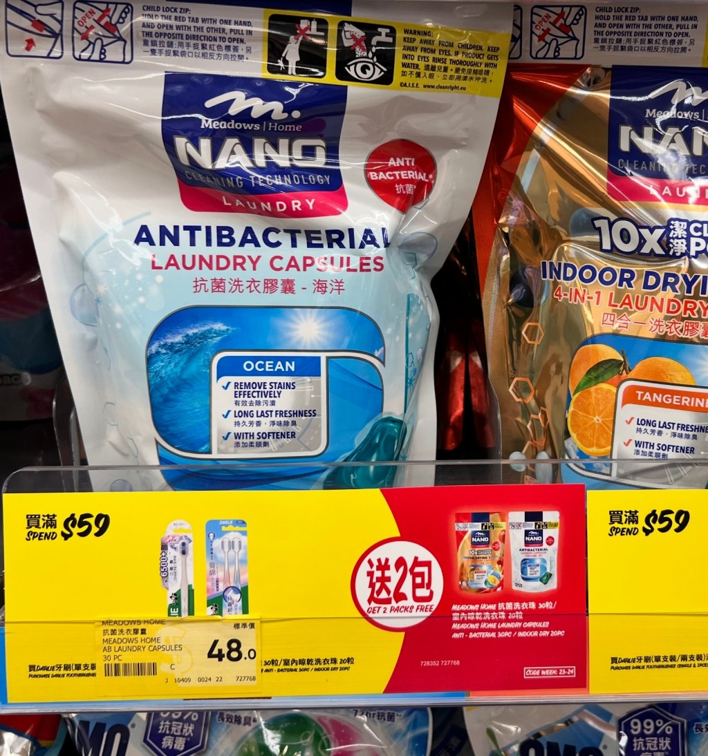 ▲惠康送两包20或30粒装Meadows Home洗衣珠。