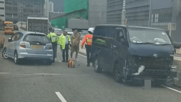 一名28岁男子驾驶客货车载3岁女儿沿观塘绕道行驶,其间与两车发生相撞,酿成3车意外,警方调查后发现他曾经饮酒,但没有超标而被警员警告。