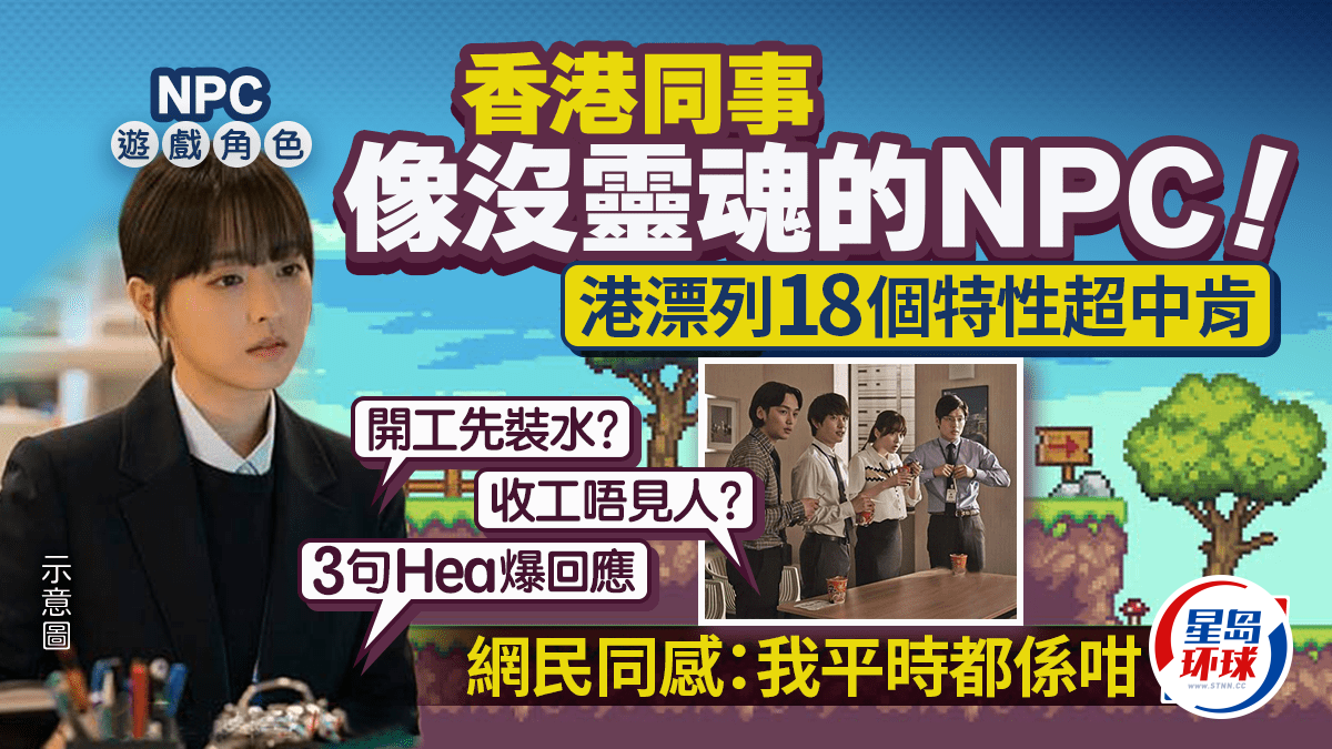 该名港漂在小红书以“经常觉得香港同事很像NPC”为题,形容香港同事如“NPC(Non-Player Character)”,意指固定行为模式的角色,从日常工作到休闲互动,皆展现出一种独特又统一的模式,他更透过日常与同事的相处点滴,整理了共十八个行为特征。