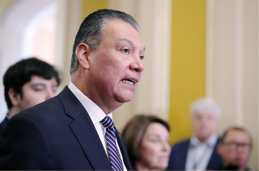 ▲加州民主党参议员帕迪拉发表激动的讲话,讲述上周在洛杉矶出席国安部长诺姆的记者会时被强行带离现场的情况,他鼓励美国人是时候醒悟,抗议总统特朗普的政府。美联社