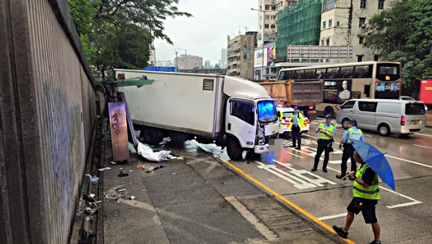 事发于昨(17日)早上6时32分,有车Cam拍得涉事的中型货车当时沿东九龙走廊往油麻地方向落斜,当驶至漆咸道北近佛光街天桥对开时失控,货车“大回环”转了180度越过3条行车线,直撞向行人路上的巴士站,车头掉转停下。现场巴士站有途人被撞倒,亦有人吓得急忙躲避。
